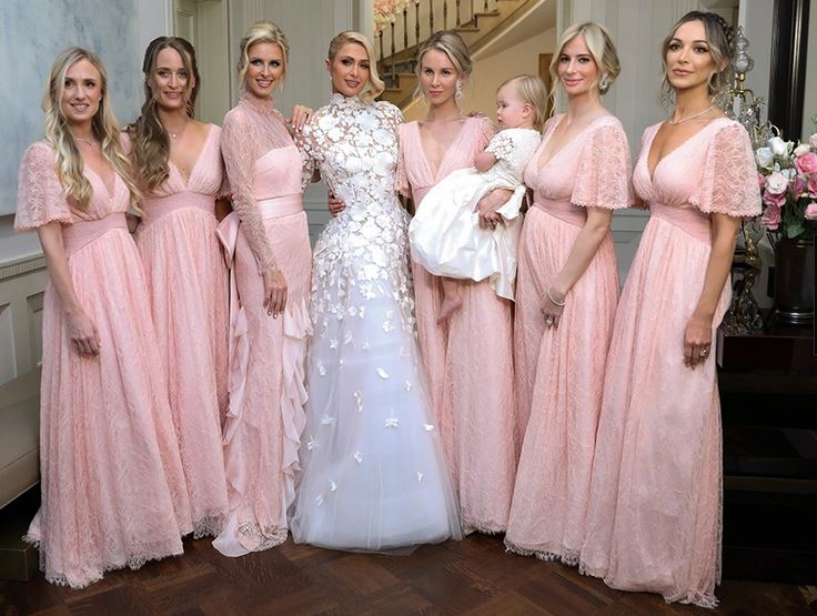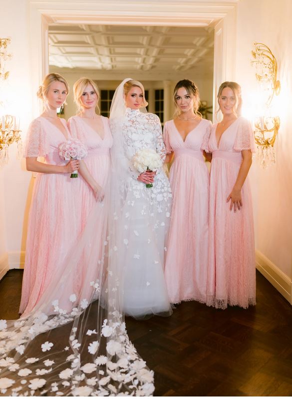 Paris Hilton sposa in Oscar de la Renta con Nicky Hilton e damigelle