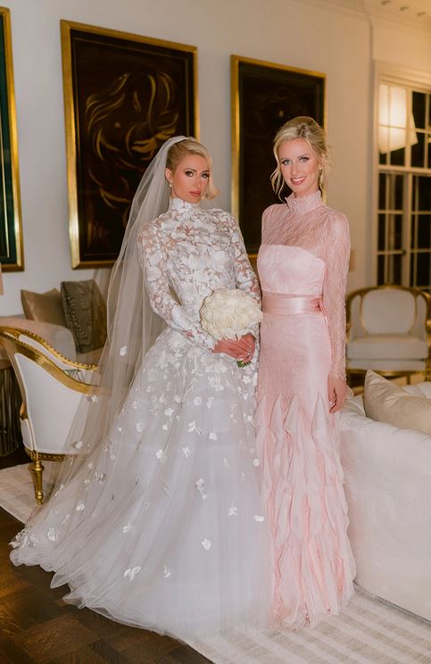 Paris Hilton sposa in Oscar de la Renta con nipotine