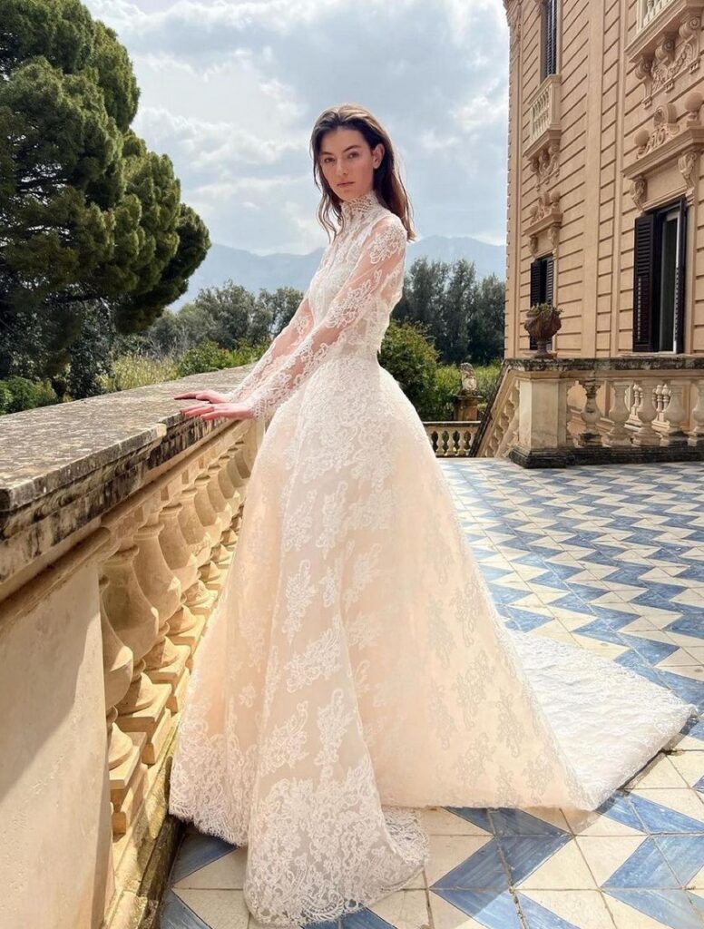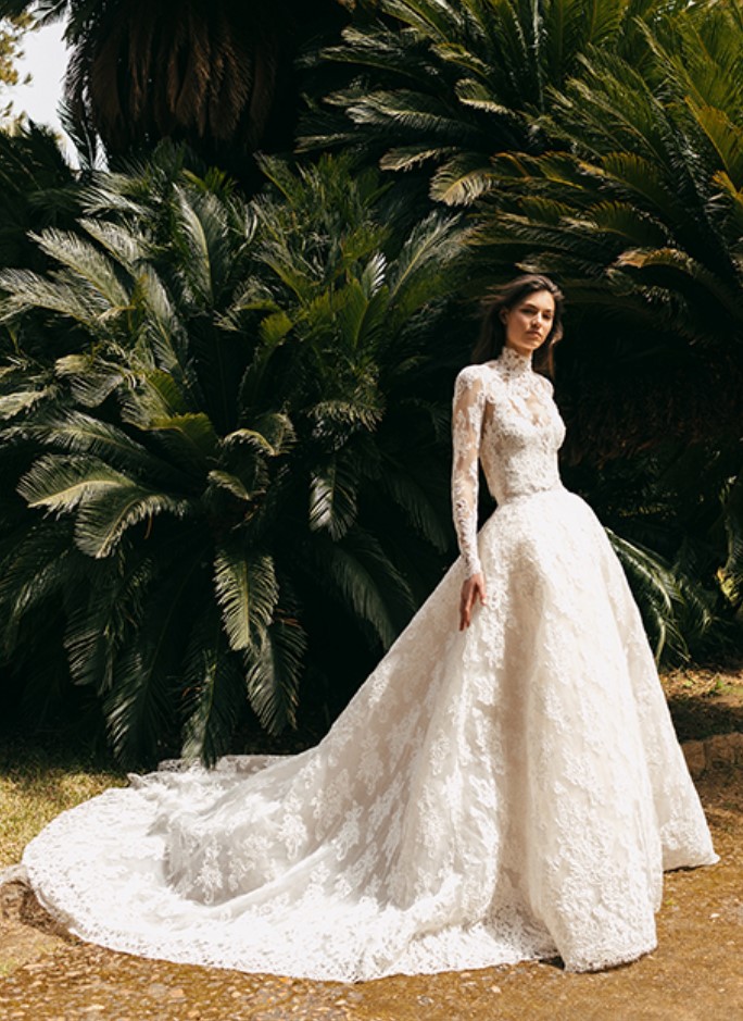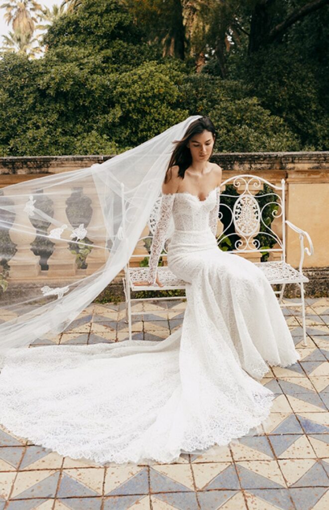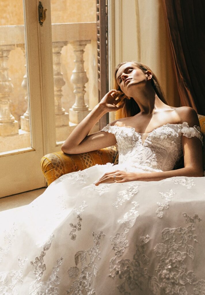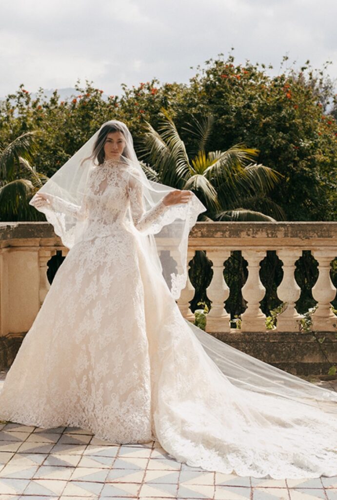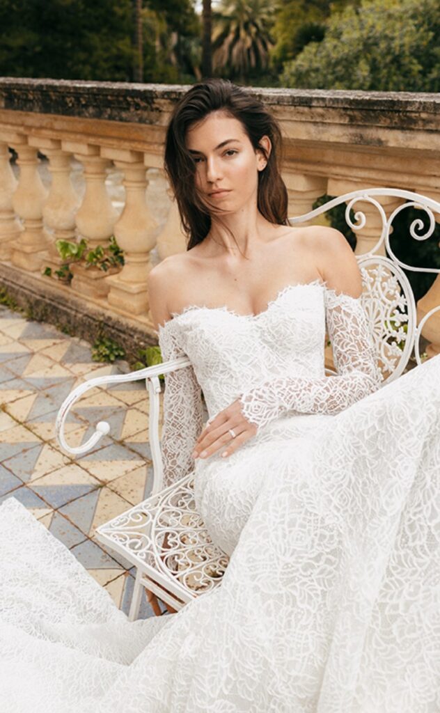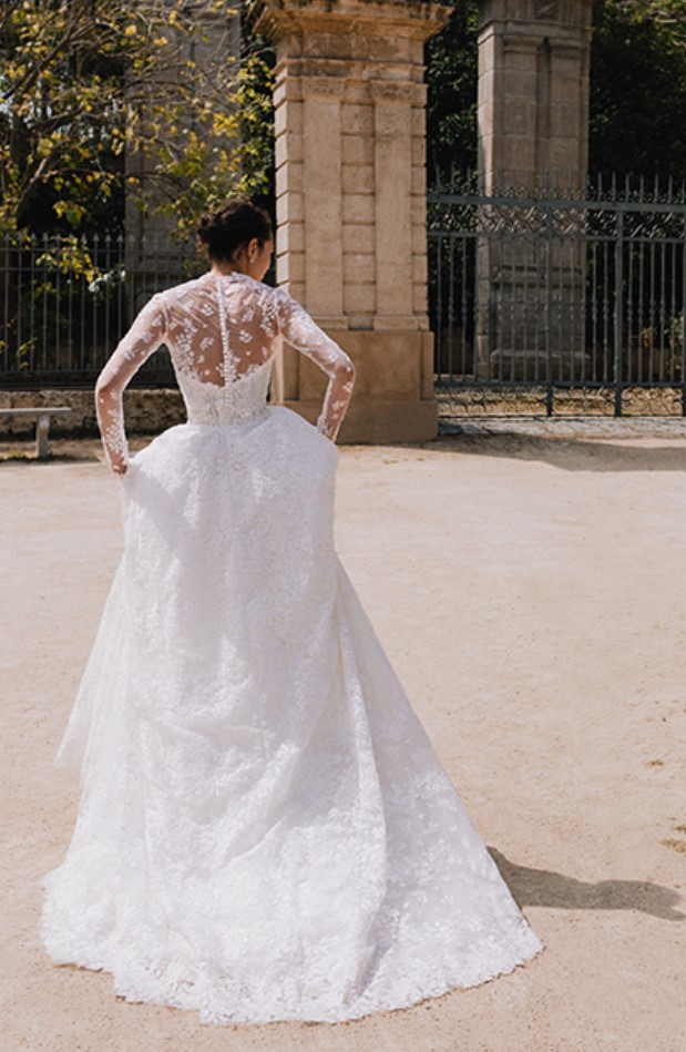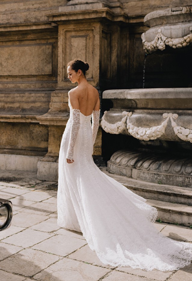 La versatilità della collezione è dimostrata anche nell’aggiunta di guanti e bolero agli abiti da sposa in pizzo; una soluzione perfetta per coprire la sposa durante la cerimonia, specialmente in chiesa, e lasciarla libera per i festeggiamenti successivi. Aggiungendo, poi, anche un ampio velo in pizzo, viene completato il look.