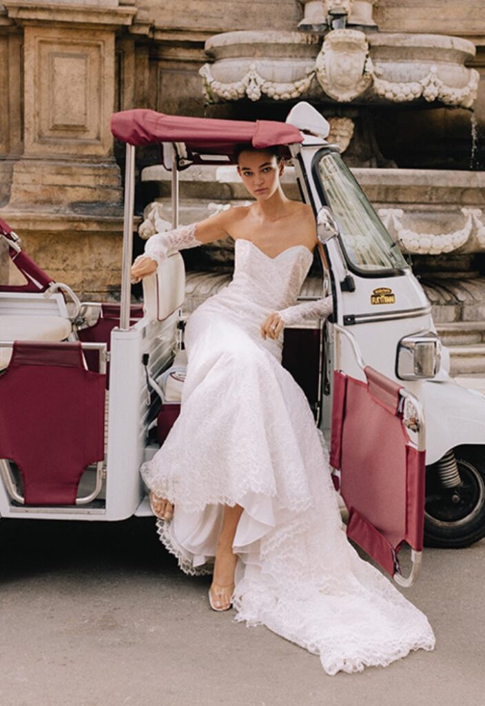 Ritroviamo il colore, il glamour e la preziosità della moda bridal con la collezione sposa Spring 2023 Monique Lhuillier e Bliss ed è una gioia notare che si tratti di un omaggio all’Italia.