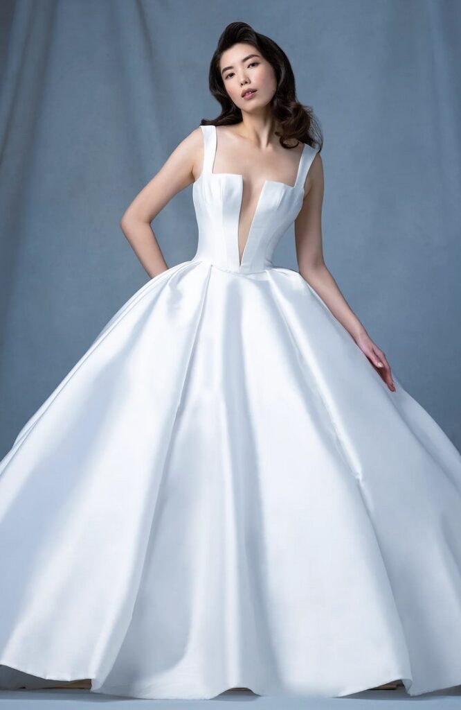Per chi ama il movimento, perfetti gli abiti da sposa “Cupola” e “Belfry”, due modelli svasati con gonna strutturata.