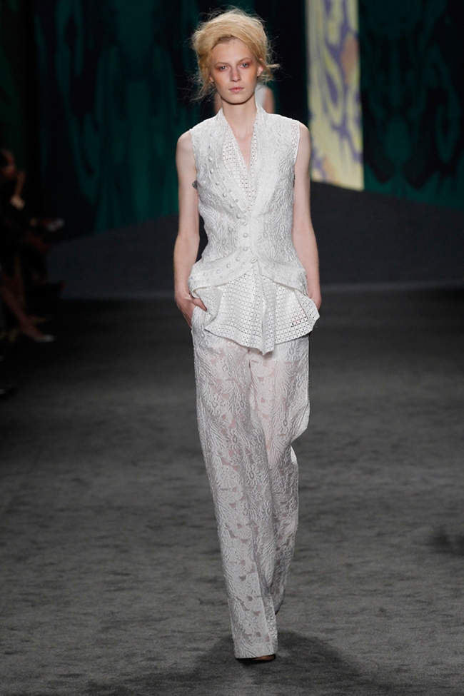 Rimanendo nel cinema, chi dichiara di essesersi ispirata a Lauren Bacall, Shirley MacLaine and Angie Dickinson è Jenny Packham, stilista con base a Londra di cui abbiamo visto le collezioni sposa 2013, che a New York presenta abiti luccicanti ma anche più bon ton.
