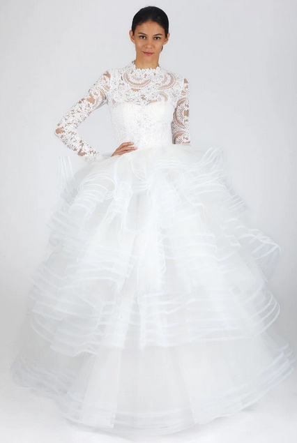 E veniamo ad alcuni modelli di ispirazione Grace Kelly dalla Collezione sposa Oscar de la Renta Fall 2013 ispirazione tornata prepotentemente alla ribalta in queste collezioni viste alla New York Bridal Week, con molti corpetti in pizzo dalle maniche lunghe abbinati a grandi gonne.