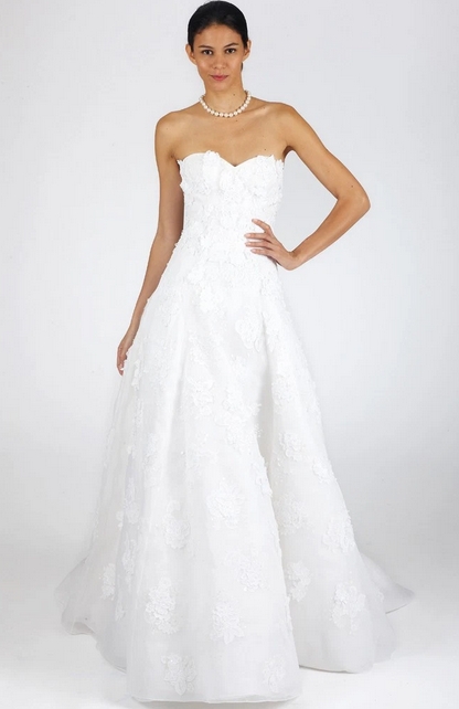 Trionfano nella Collezione sposa Oscar de la Renta Fall 2013 i fiori in 3D, applicati anche a silhouette scivolate, su pizzo e su cotone.
