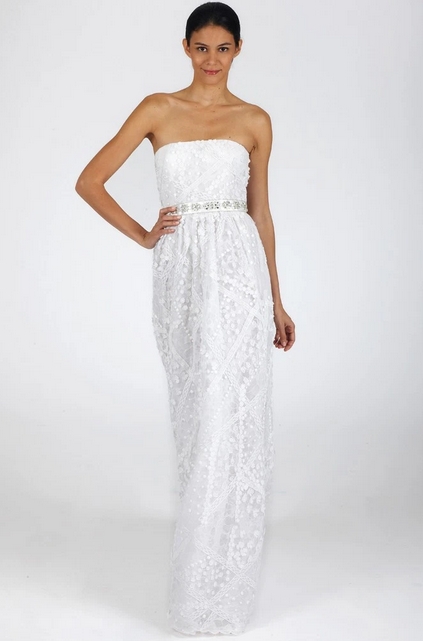 Ecco un modello senza spalline perfetto per la sposa giovane e sofisticata, a cui si può anche abbinare piccola cintura con cristalli.