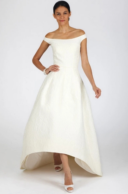 Originalissimo dalla Collezione sposa Oscar de la Renta Fall 2013 questo abito da sposa stile Jackie Kennedy – e non è un caso, visto che de la Renta fu tra i suoi designer – perfetto per la sposa davvero sofisticata, dal gusto vintage, e magari desiderosa di mettere in evidenza le scarpe nel suo giorno più importante.