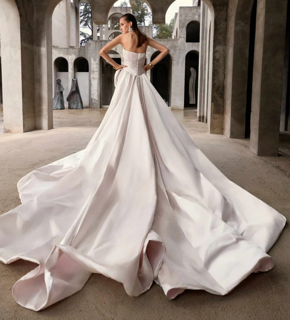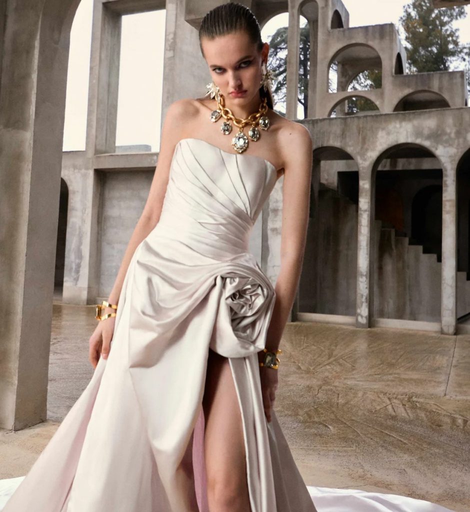 Con “Gatsby”dalla collezione Galia Lahav Gala Spring 2026 una sottoveste di perline appena accennata, drappeggiata in linee art-deco scintillanti, emana un'energia da protagonista senza sforzo con il suo accento di piume.” L’abito da sposa vintage Gatsby – spiega il brand - incontra il fascino del red carpet, perché la sposa deve sempre rubare la scena. Completate il look con la sopragonna scintillante abbinata, chiusa in vita, e con un boa di piume oversize per un effetto scenografico”.