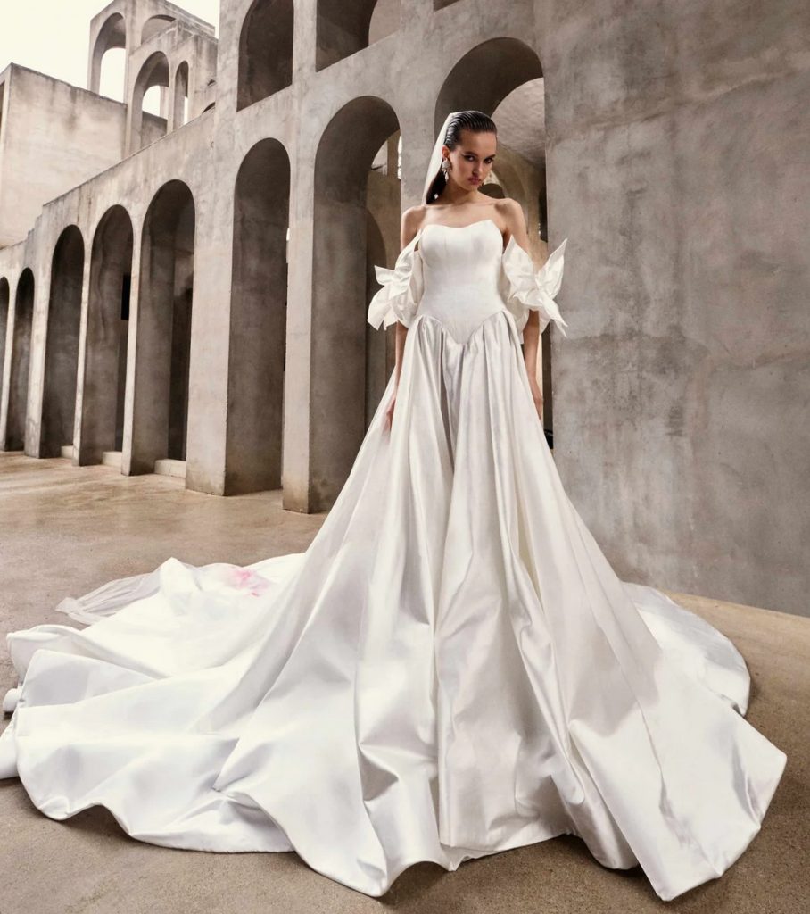 “Techno-meets-classics” è l’atmosfera che ispira la collezione sposa Galia Lahav Couture Spring 2026 “Kiss & Tell”, nelle parole di Sharon Sever, responsabile del design del brand; una “collezione che parla di seduzione, mistero e rivelazione”, prosegue Sever, che ha rilevato in precedenza un ritorno a silhouette ed estetica eleganti e senza tempo: “Lo sto portando in una nuova era e sto presentando alle spose un classico reinventato”, dice. “Cerco davvero di reinventarmi ogni volta, per non annoiarmi e per non annoiare le spose”.