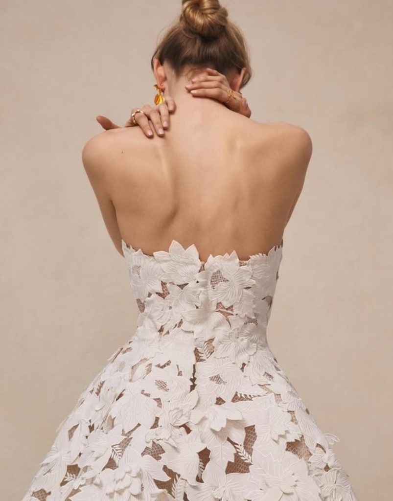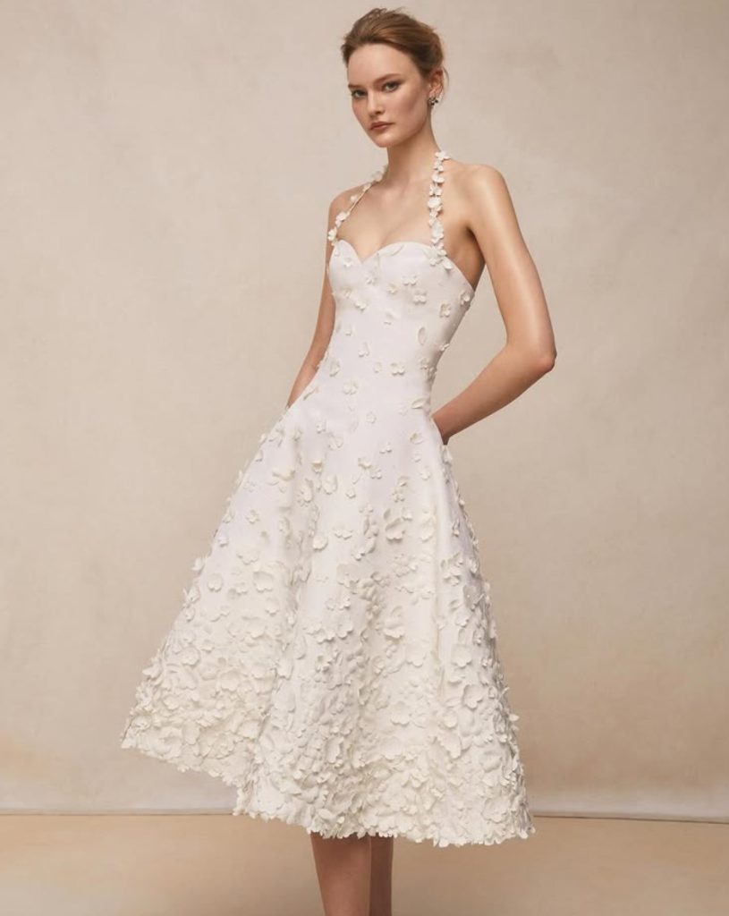 Oltre alla cerimonia, la collezione comprende abiti da cocktail ricamati in avorio e bianco tenue. Questi capi offrono opzioni sofisticate per eventi di fidanzamento, cene di prova o ricevimenti eleganti, assicurando che la sposa Oscar de la Renta sia splendidamente vestita per ogni momento della sua celebrazione.