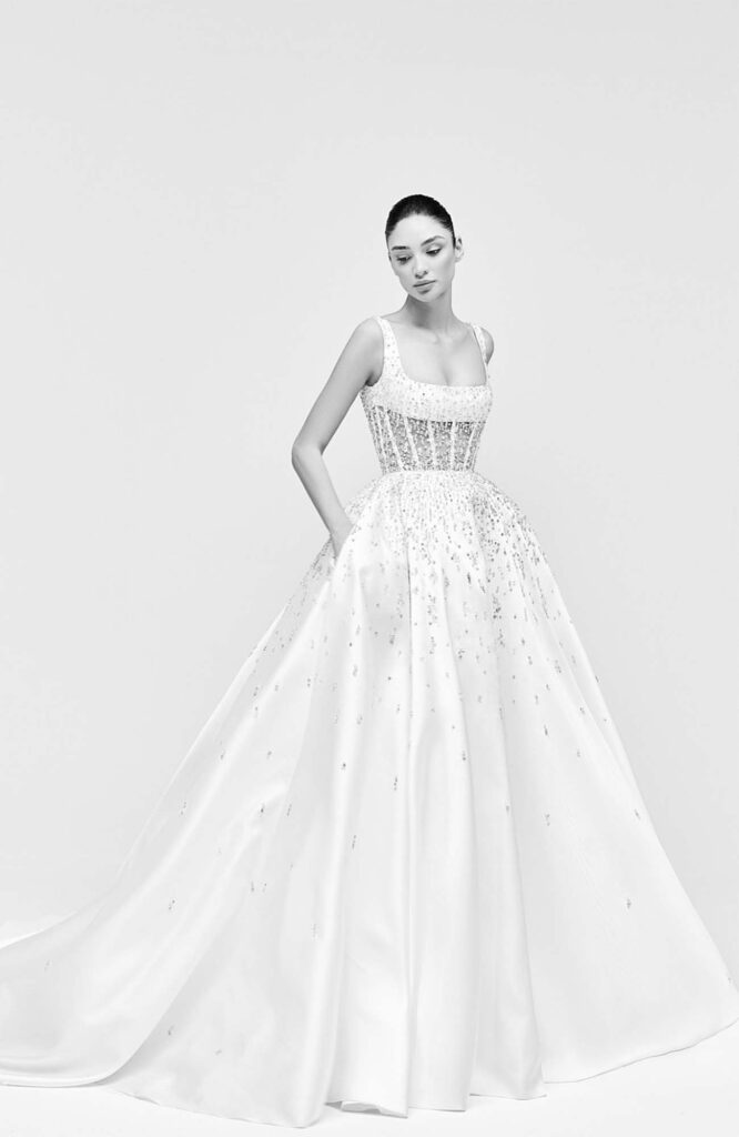 Il celebre stilista libanese che veste sui red carpet star del cinema e celebrities e crea gli abiti da sposa e da sera delle principesse, propone ancora una volta abiti da sposa in grado di comporsi, aggiungendo via via elementi come guanti e veli da sposa, giacchette, bolero e sopragonne, per chi desidera completare il bridal look.