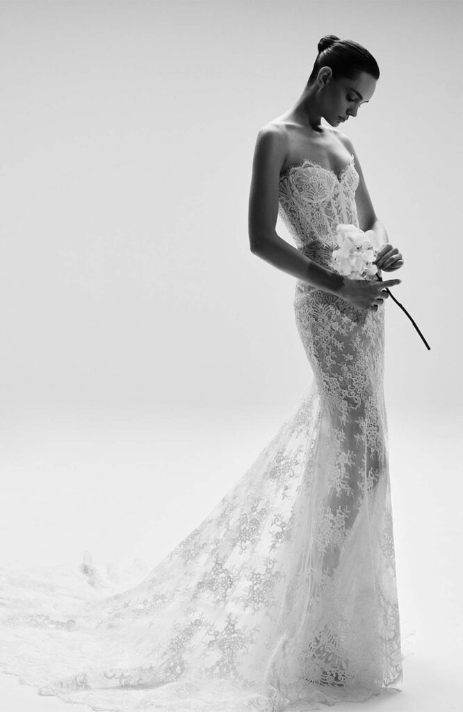 Spettacolari, come sempre, anche gli abiti da sposa Zuhair Murad in pizzo, sensuali e romantici, da completare con i vari accessori, compreso il giacchino in pizzo che conferisce un look alla Grace Kelly sposa. “Luminosa e radiosa, l'eterea pienezza degli abiti in pizzo evoca un mondo poetico e raffinato, che richiama la morbidezza dei petali e lo scintillio dei cristalli, che avvolgono le curve del corpo mentre i ricami floreali sbocciano e si disperdono lungo il tulle di seta”, spiega la maison.