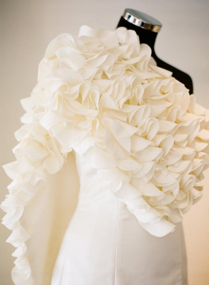 Ancora una volta ammiriamo il dettaglio dei fiori in organza applicati.