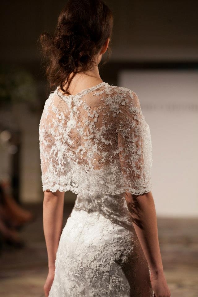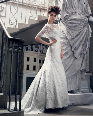 Deliziosa la mantellina in pizzo abbinata (guarda i migliori modelli di mantella e cappa da sposa 2013).