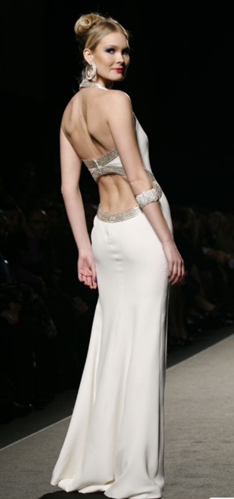Applicati agli abiti in bianco elementi in argento, su modelli anche sensuali.