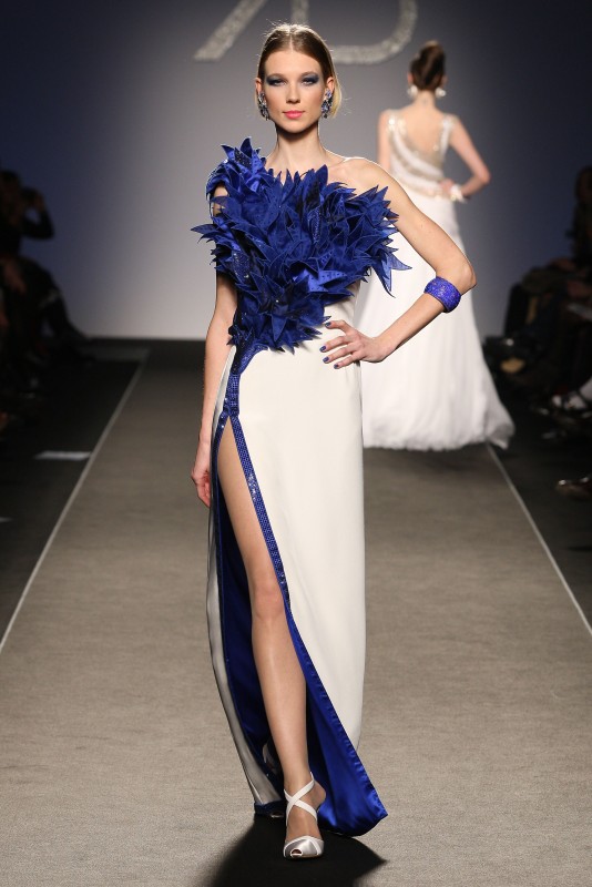 L’abito bianco e blu della collezione Renato Balestra Primavera Estate 2013