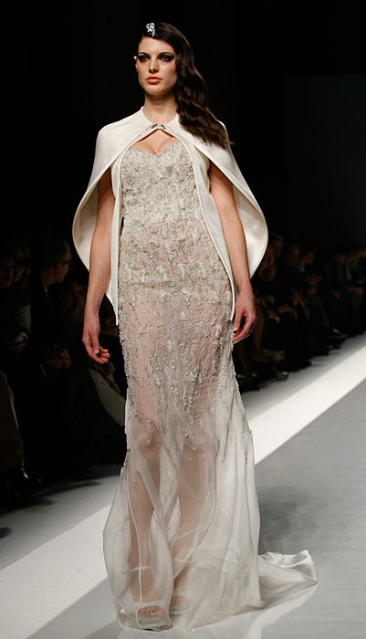abito bianco,abito da sposa,abito da sposa Sarli,AltaRomAltaModa,Fausto Sarli,mantella da sposa,organza,pizzo,Primavera/Estate 2013,Sarli Couture