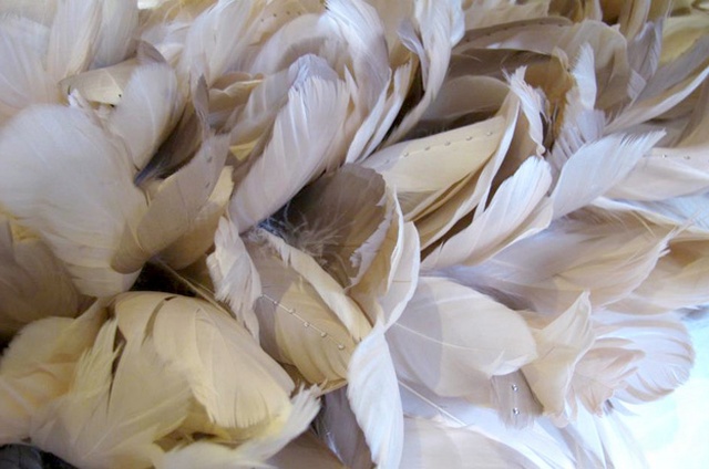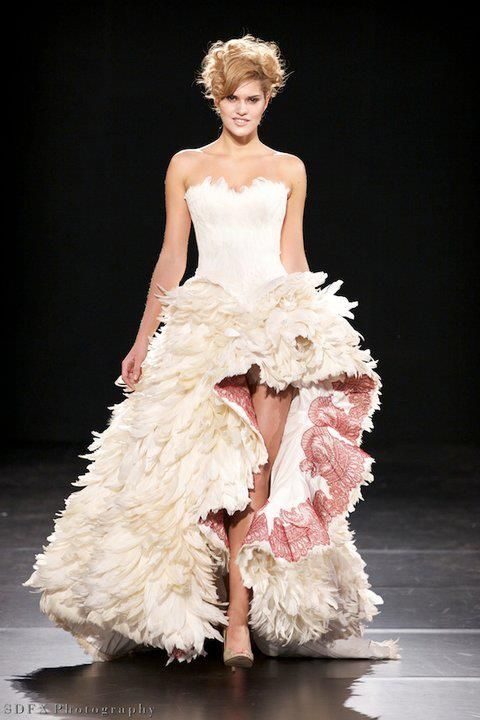 Grande passione della stilista per le piume, elemento chiave dell'abito di maggiore successo della collezione Suzie Turner Couture: “Broken wings”.