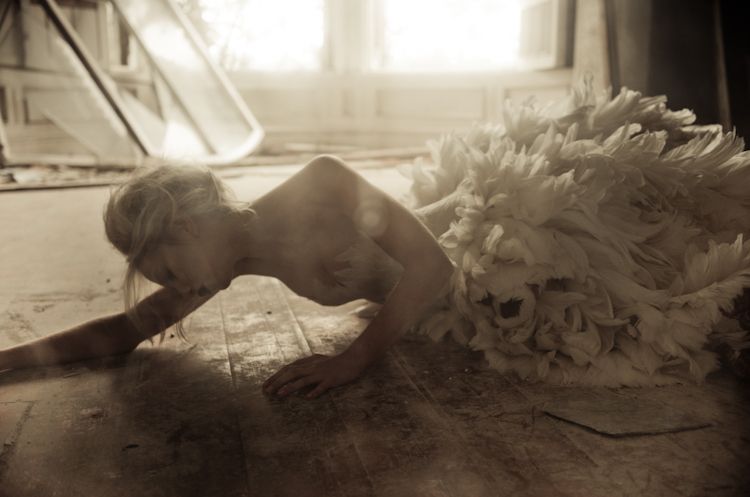 Suzie Turner is beyond fantastic. The image of the model on the floor is sublime. I cannot believe she decorated each feather sith stones…that is above and beond any compliments