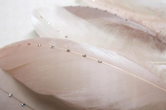 Ad ogni piuma sono applicati a mano piccoli cristalli, per un effetto finale lucente.