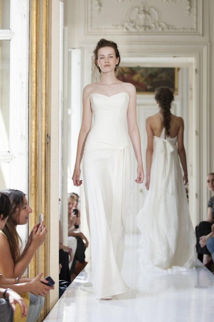 Tornano alla mente le dive della vecchia Hollywood come Jean Harlow e Marlene Dietrich con l'abito “Reitz”, in satin di seta ed inserti in pizzo, in vendita in UK al prezzo di 4.600 sterline (quotazione Brides UK, Settembre 2013).