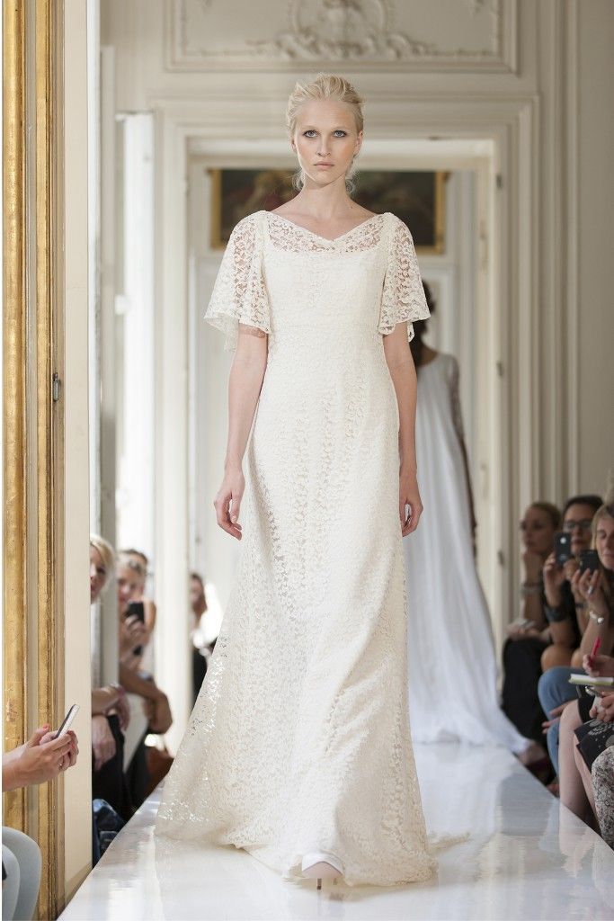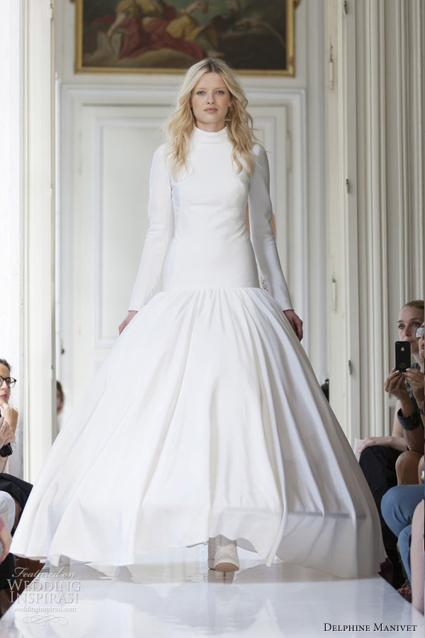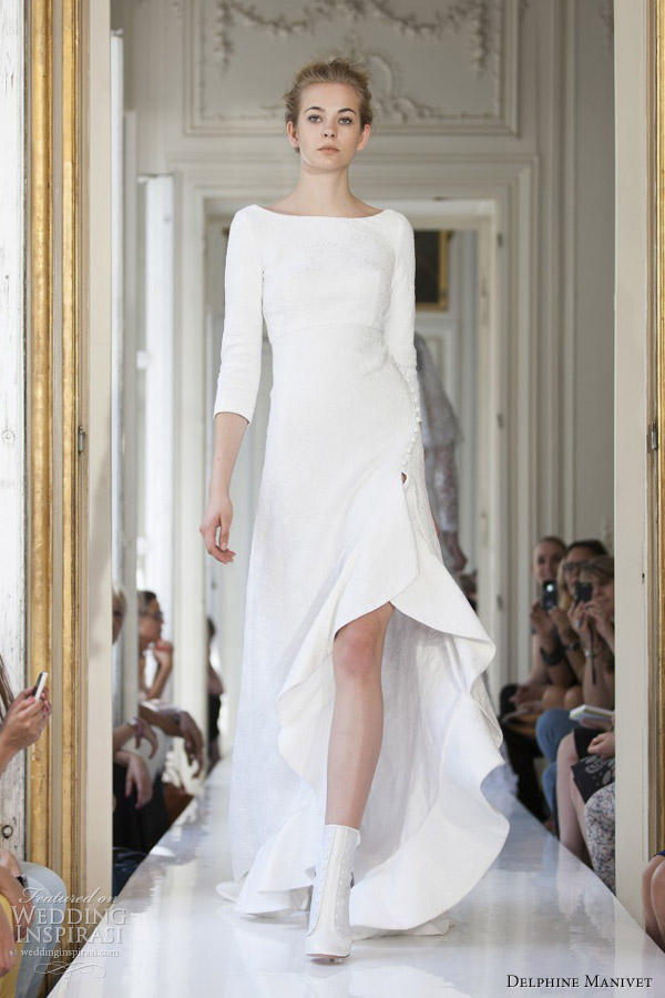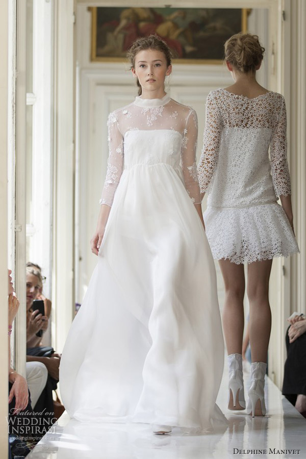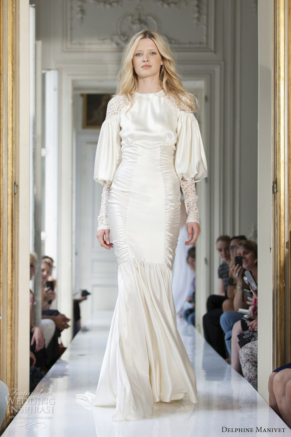 Forte nella collezione sposa Delphine Manivet 2013 è l'ispirazione agli anni '30 e agli anni '70, con ampio uso di pizzo su modelli leggeri e scivolati.