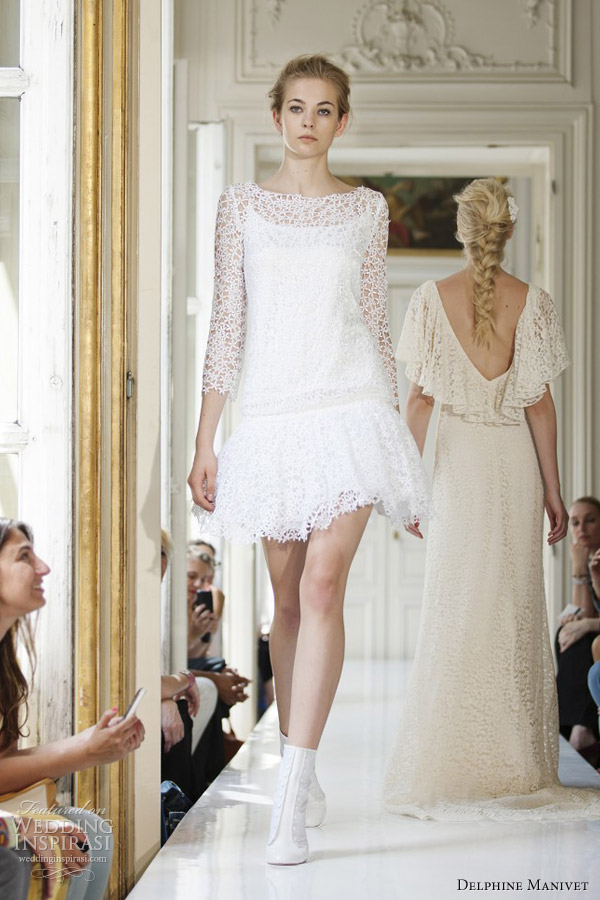 Passiamo all'ispirazione anni Cinquanta nella collezione sposa Delphine Manivet 2013 con alcuni abiti da sposa corti.